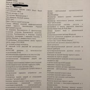 Lexus RX300 AWD Black Royal 2.0T/238 6AT 4WD. Объём мотора л: 2.00. Внедорожник 5. Полный привод. КПП: 6АТ. Цвет светло-серый металлик. Салон: отделка кожей перфорированной кожей черного цвета/вставки - черный фактурный пластик. Полностью спецификация на фото. Автомобиль в отличном состоянии. Зимняя резина. Подробности по телефону. Торг у машины.Куплен у официального дилера.Оригинальный ПТС.