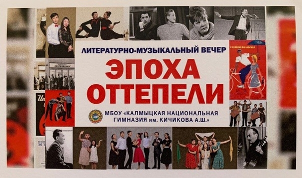 Учащиеся и учителя Калмыцкой национальной гимназии попытались воссоздать атмосферу 60-х годов ХХ столетия. Гимназисты с удовольствием изучали историю того времени, пели песни, читали стихи молодых, но уже получивших всенародное признание поэтов. На литературно-музыкальном вечере прозвучали произведения поэтов шестидесятых годов прошлого века Беллы Ахмадулиной, Роберта Рождественского, Евгения Евтушенко. Программу для гостей подготовили учащиеся гимназии. Ну и как же без зажигательных и эмоциональных танцев 60-х.