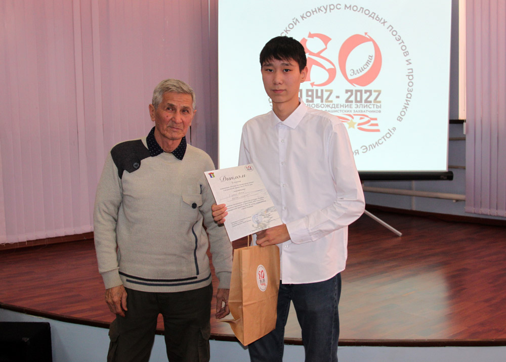 Девятиклассник Малодербетовской гимназии им. Б.Б. Бадмаева Олег Акимов, занявший первое место в этой же номинации, но в возрастной категории от 14 до 16 лет, с ранних лет пишет стихи. Юноша поблагодарил организаторов конкурса за возможность представить свои авторские произведения. Десятиклассник элистинской средней школы № 2 Андрей Бородин завоевал пальму первенства в номинации «Проза на русском языке». Он посвятил свой очерк «Освободитель Элисты» ветерану Великой Отечественной войны, народному писателю Калмыкии Андрею Манганыковичу Джимбиеву. Победители и призеры конкурса были награждены грамотами и памятными подарками.
