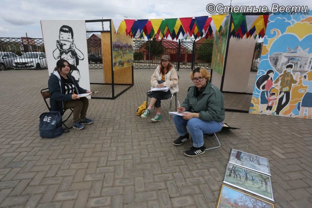 После экскурсии по юрте и залам музея жители и гости республики с удовольствием заходили в стилизованную кибитку-кафе. Там предлагали прохладительные напитки, горячий чай, выпечку, блюда национальной кухни. На территории этнохотона также установили арт-кубы с репродукциями картин знаменитых калмыцких художников. Их изготовили в 2021 году к 100-летию музея. В дни фестиваля в этом творческом уголке планируют проводить концерты, пленэры и другие мероприятия. На площадке уже поработали молодые художники Элисты. Они рисовали для всех желающих портреты и пейзажи города.