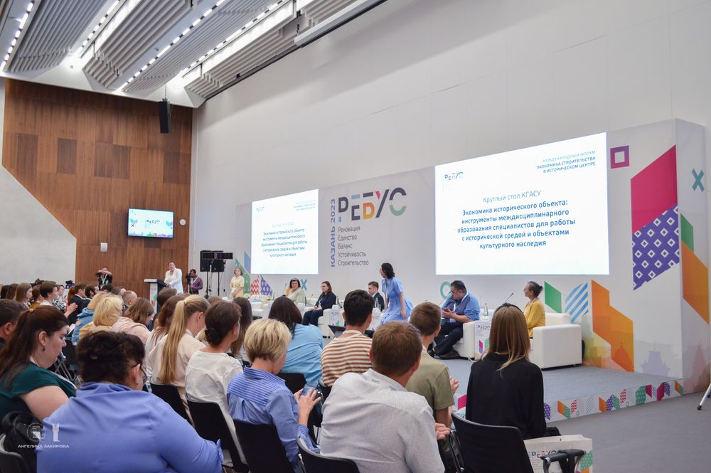 В рамках форума «РЕБУС» был организован круглый стол «Экономика исторического объекта: инструменты междисциплинарного образования специалистов для работы с исторической средой и объектами культурного наследия», организатором и модератором которого выступила директор Института архитектуры и дизайна КГАСУ, заведующая кафедрой муниципального менеджмента, доктор экономических наук, профессор Романова Анна Ильинична. Анна Ильинична отметила, что «..современное образование претерпевает очередной виток изменений: уход от бакалавриата и возврат к классическому специалитету, поэтому именно сейчас – идеальное время для внесения изменений в федеральные стандарты и учебные планы вузов. А изменения нужны, ведь сжатая система бакалавриата привела к «вымыванию» экономики из перечня дисциплин современных архитекторов, градостроителей и реставраторов. О том, каковы новые компетенции городского планировщика, шёл разговор в рамках образовательного круглого стола форума «Ребус».