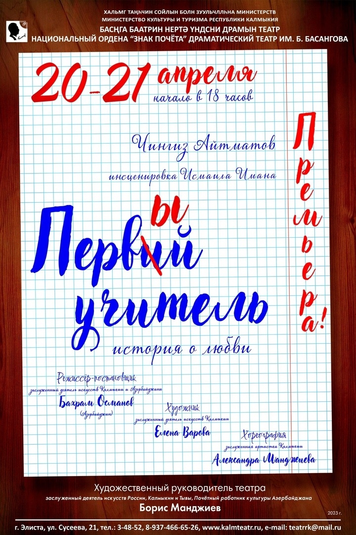 Национальный драматический театр им. Баатра Басангова приглашает на премьеру спектакля «Первый учитель».