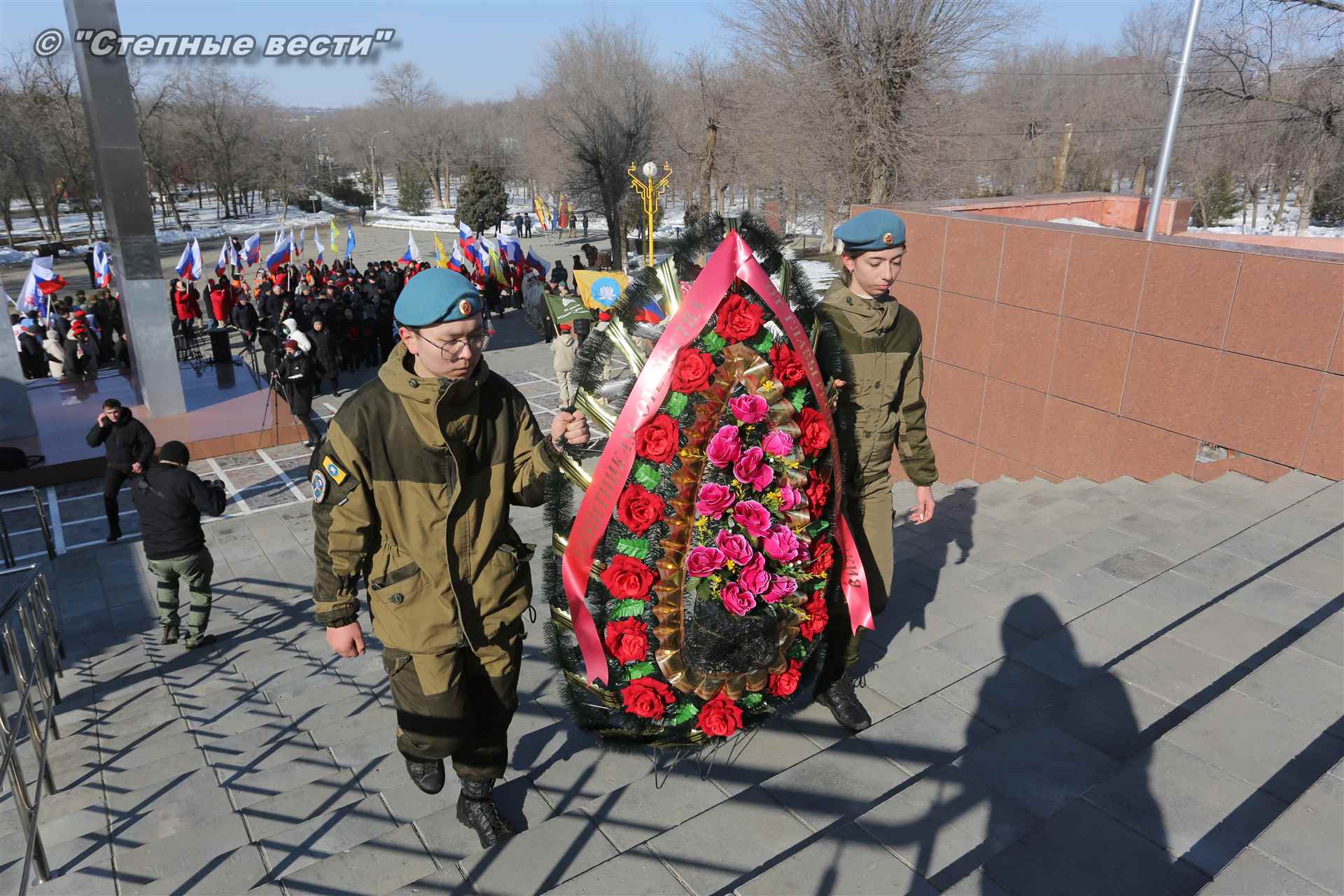 Представители молодежных организаций, элистинцы, участники боевых действий вместе с Главой Калмыкии возложили цветы и венки к мемориальному комплексу.