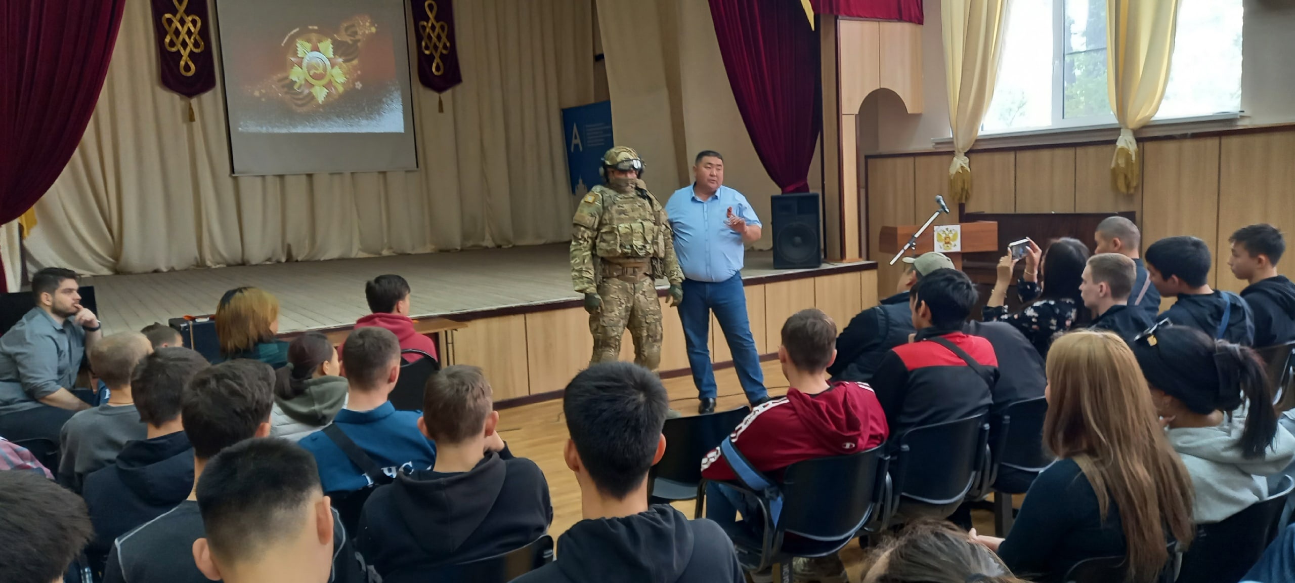 Элистинский политехнический колледж посетил депутат ЭГС, руководитель реготделения «Юнармии» Чимид Джангаев. Ветеран боевых действий и участник СВО рассказал студентам о важности сохранения исторической правды и славных воинских традиций. Вместе с ним пришли также инструкторы по военной подготовке юношей допризывного возраста. Еще одним мероприятием стала акция «Георгиевская ленточка» .