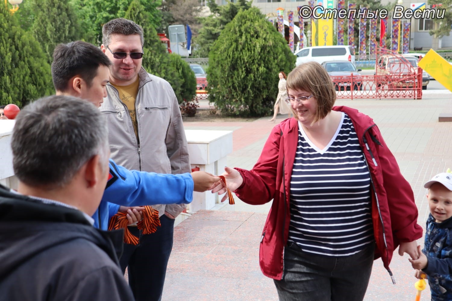 Жителям столицы Калмыкии раздают георгиевские ленты