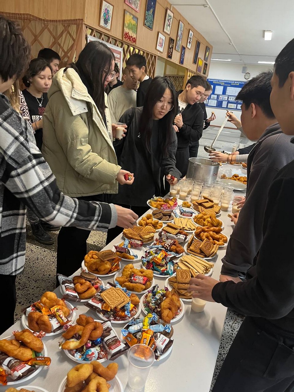 9 февраля обучающиеся факультета СПО, собрали своими силами в честь праздника, борцоги, конфеты, печенья, калмыцкий чай и угостили обучающаюхся и преподавателей в фойе корпусов на большой перемене. Под калмыцкую музыку студенты читали йорял, устраивали конкурсы и танцевали.