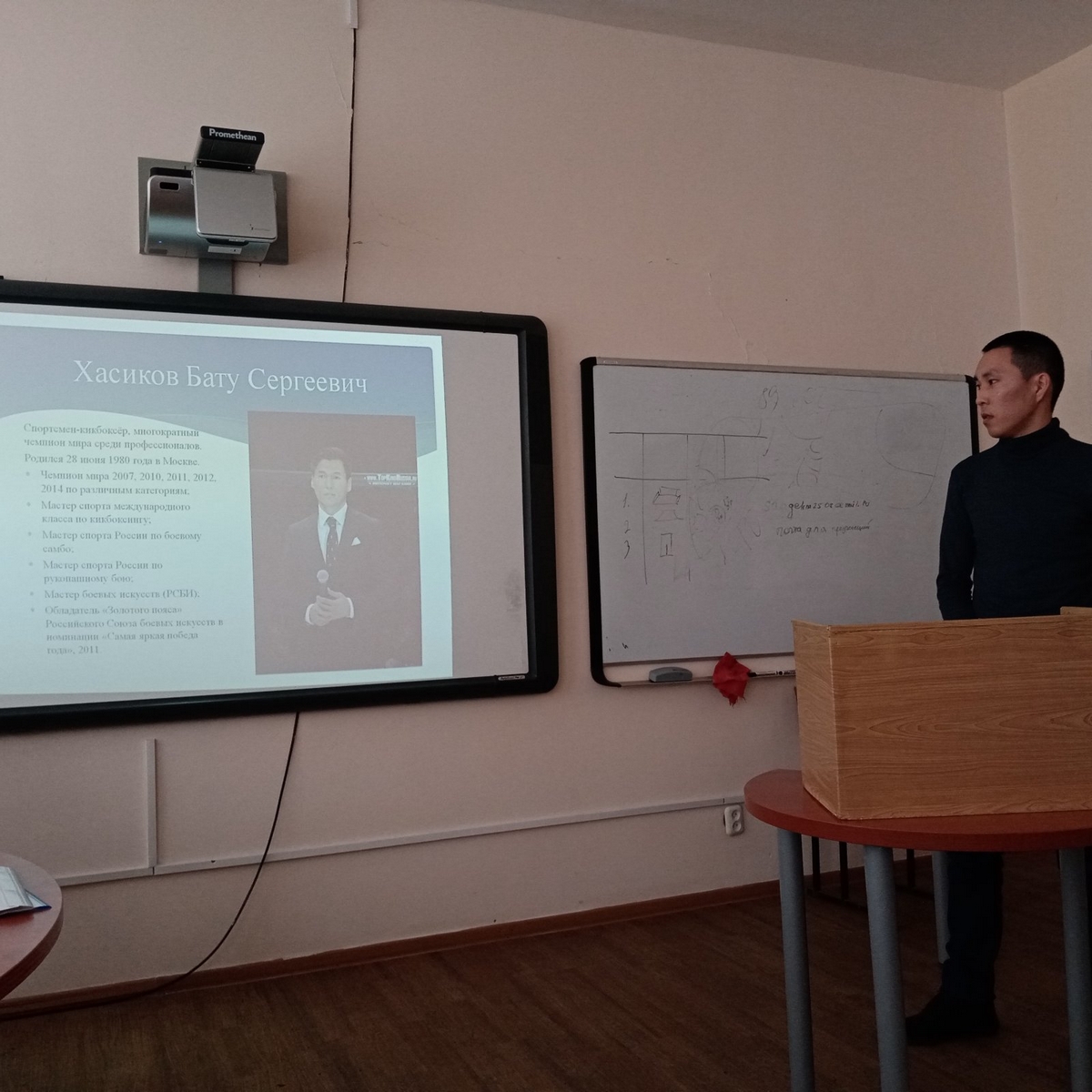 Проблеме формирования и пропаганде здорового образа жизни было посвящено мероприятие в рамках выполнения студентами 5 курса направления «Педагогическое образование» коллективного социального проекта «Здоровый образ жизни студента – это, здорово!». Данное мероприятие проводилось в форме обсуждения проблемы занятий физической культурой и спортом, направленного на дальнейшее воплощение студентами в собственную жизнедеятельность как важного фактора здорового образа жизни. В мероприятии приняли участие студенты 2 и 4 курсов. В выступлении и презентации магистранта Бата Чильгирова студенты узнали о значении физической культуры и спорта в укреплении здоровья в студенческом возрасте, о возможности заниматься различными видами спорта в нашем университете, о достойных примерах спортивных достижений спортсменов из Республики Калмыкия. О своем отношении к занятиям спортом и участии в спортивной жизни инженерно-технологического факультета, университета поделились студенты 5 курса Ата Аннадурдыев и Мингиян Китаев.