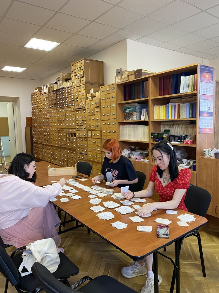 В начале практики студенты прослушали вводную лекцию Корольковой М.Д., научного сотрудника Отдела диалектной лексикографии и лингвогеографии ИЛИ РАН, которая с большим увлечением рассказала об уникальности словарной картотеки Института, насчитывающей более 8 млн. карточек, позволяющих вести разнообразные лингвистические изыскания. По словам Корольковой М.Д., картотека, созданная еще в XIX веке под руководством Я.К. Грота и А.А. Шахматова, представляет собой «интернет 19 века», поэтому должна охраняться государством, так как является памятником культуры.