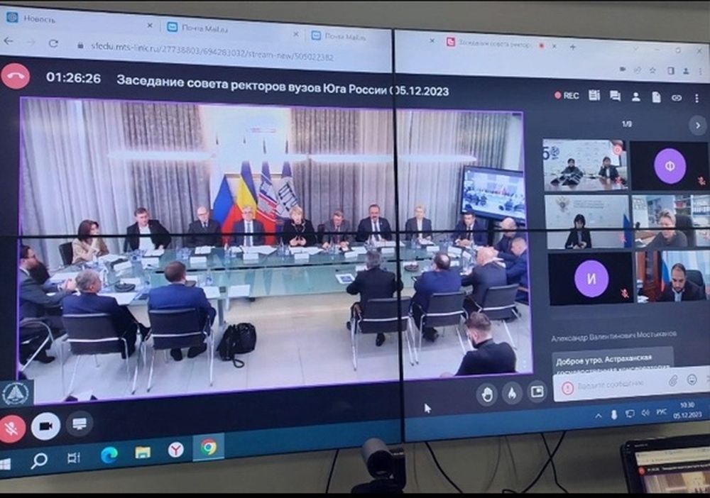 Проректор по экономике и инновациям, проф. Мантаева Э.И. и декан ФМФИТ Сумьянова Е.В. приняли участие в работе совета ректоров ВУЗов Юга России и ректоров ВУЗов Ростовской области. Заседание вели Председатель Совета ВУЗов юга России, Президент ЮФУ Боровская М.А. и председатель Совета ВУЗов Ростовской области, ректор ДГТУ Месхи Б.Ч.. В заседании прияло участие 75 ВУЗов.