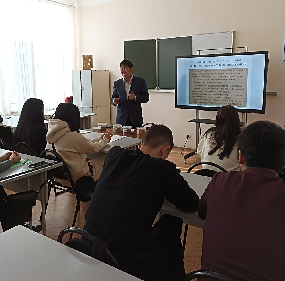 Также дал информацию о биоэкологических свойствах и хозяйственной ценности фитомелиорирующих культур, о трудностях внедрения в широкую практику сельхозпредприятий, об успешных практиках по созданию семенных участков, о получении патентов по данному проекту. Показал наглядные образцы собранных семян, во время осуществления работ по проекту.