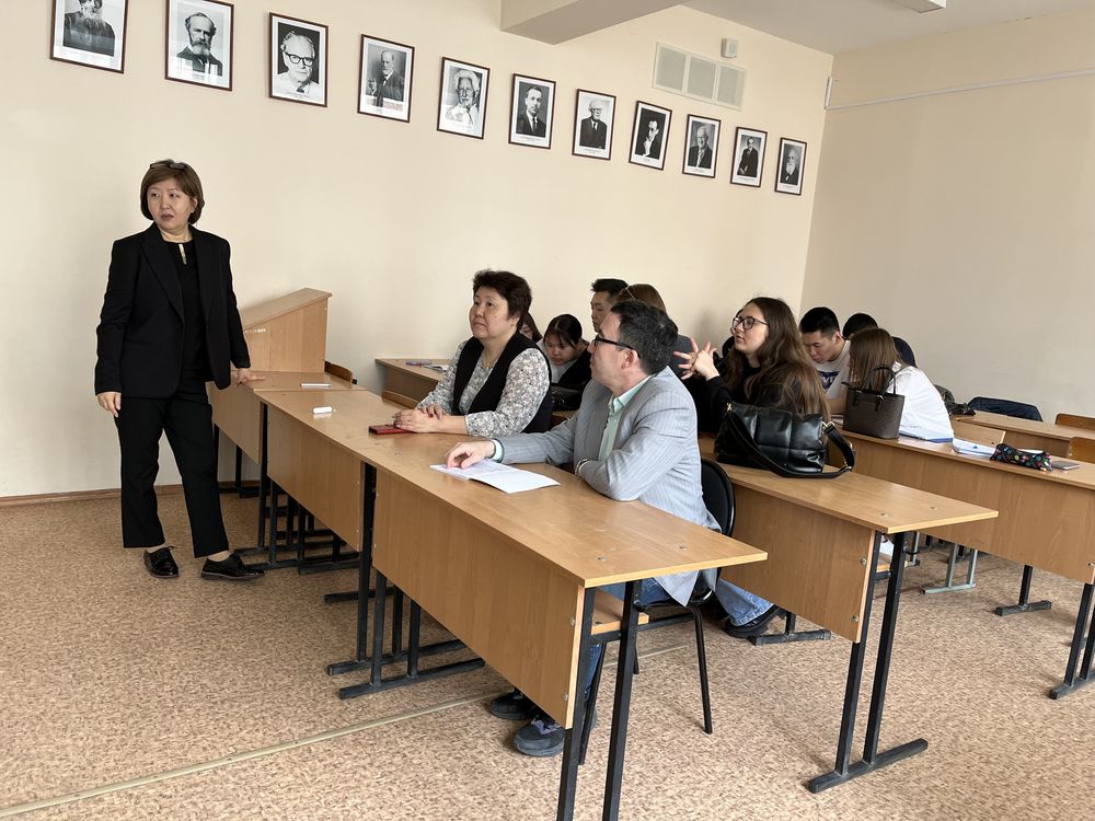 На открытом занятии присутствовали и.о. зав. кафедрой экономической безопасности, учета и финансов Кованова Е.С., и.о. зав. кафедрой психологии и педагогики высшей школы Муева А.В., доцент кафедры экономической безопасности, учета и финансов, к.э.н. Берикова Н.Б., ст. преп. кафедры экономической безопасности, учета и финансов Бурлуткин Т.В., ст. преп. кафедры психологии и педагогики высшей школы Сокальский Э.А.