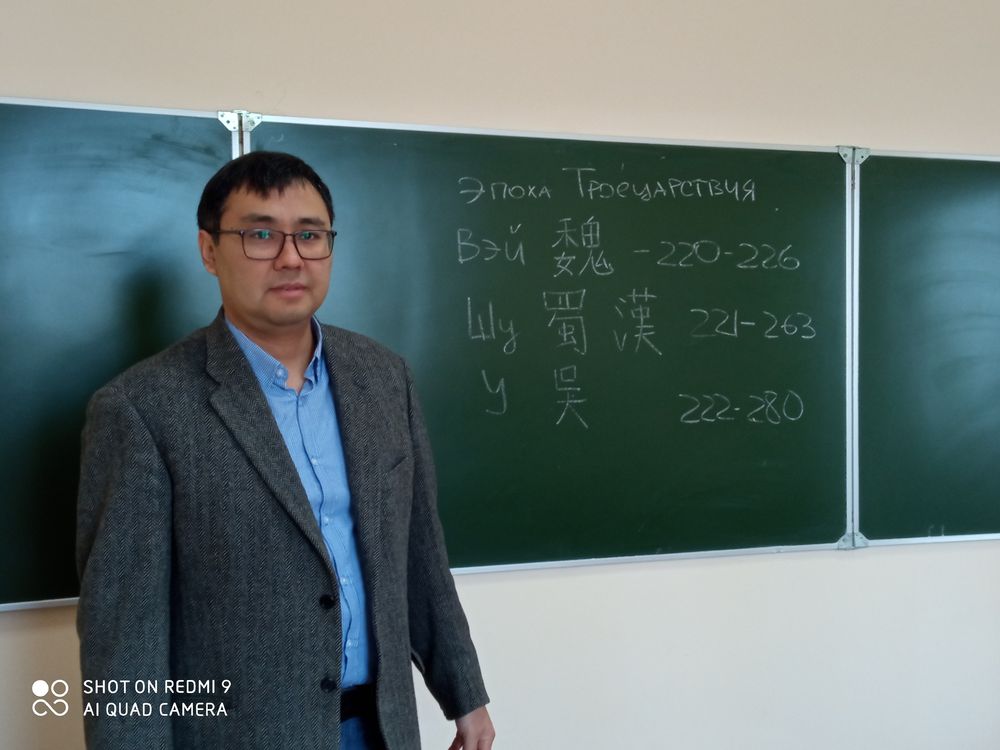 2 февраля в 302 аудитории 6 корпуса КалмГУ состоялось открытое занятие доцента кафедры иностранных языков, межкультурной коммуникации и регионоведения, к.и.н. Кукеева Д.Г. по дисциплине «История страны региона специализации». Слушателями были обучающиеся 2 курса направления 41.03.01 Зарубежное регионоведение на тему «Эпоха Троецарствия». Помимо студентов на лекции также присутствовали заведующий кафедрой «Иностранных языков, межкультурной коммуникации и регионоведения» к.фил.н. Турдуматова Э.Б., к.и.н. Надбитов Р.К. и Джимбеева Г.А.
