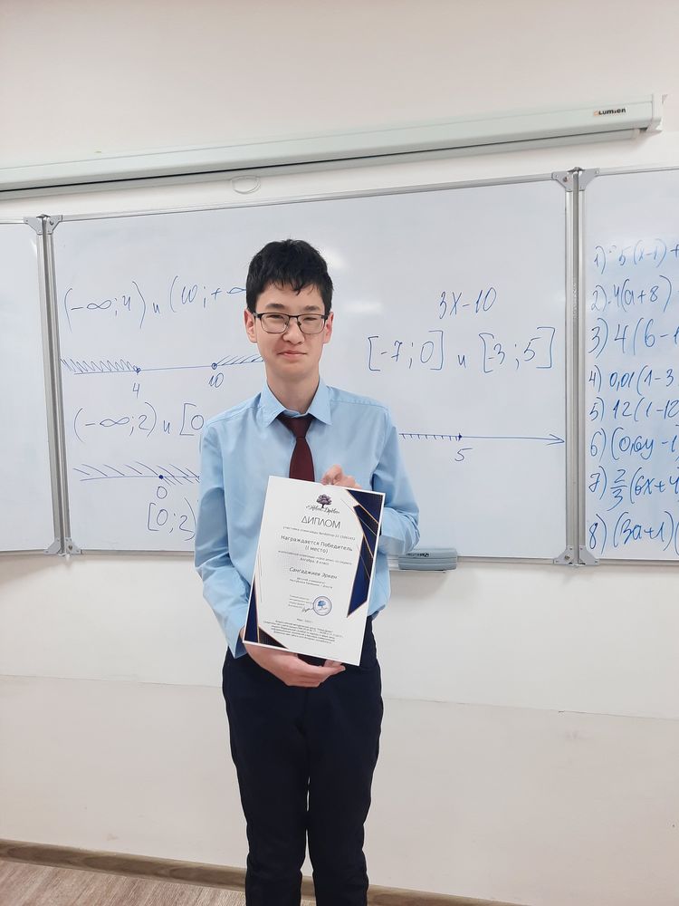 Поздравляем Эркена с победой, желаем дальнейших успехов и побед в олимпиадах! Пусть все умения и навыки пригодятся тебе в учебе и жизни!