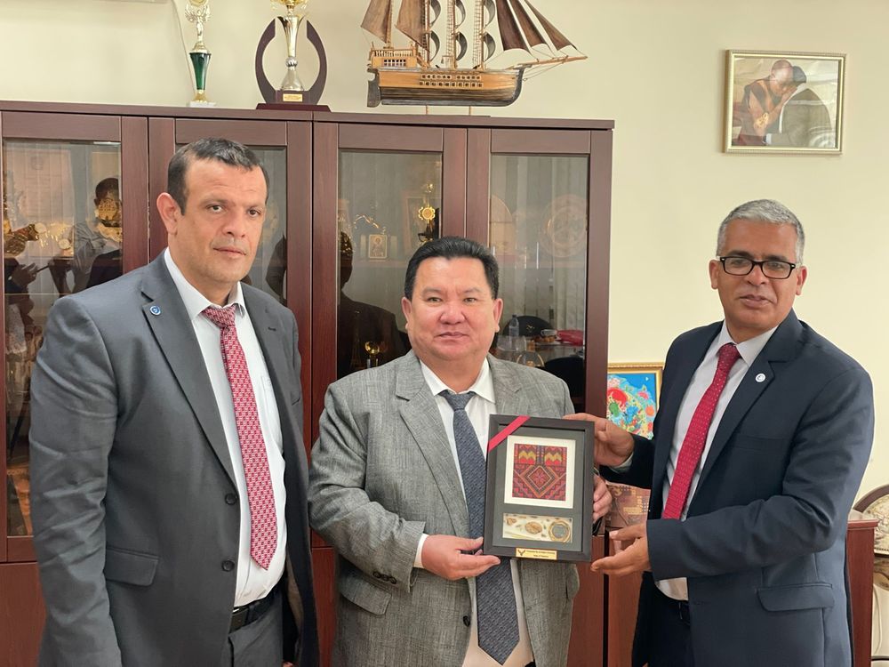 В КалмГУ прибыла делегация Палестины из Университета Аль-Истикляль (г.Иерихон). Сегодня состоялась встреча ректора Бадмы Салаева с директором Центра русского языка и культуры им.С.Есенина при палестинском вузе Мухаммедом Наджаджра и помощником проректора по административной и финансовой работе Бахаа Яхья.