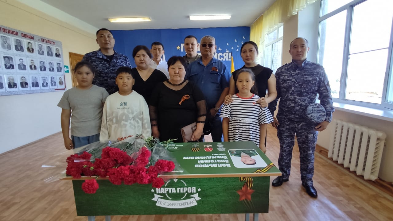В Кегультинской средней школе им. М. А. Сельгикова Кетченеровского района установили Парту Героя в честь участника специальной военной операции гвардии старшего сержанта Анатолия Болдырева,