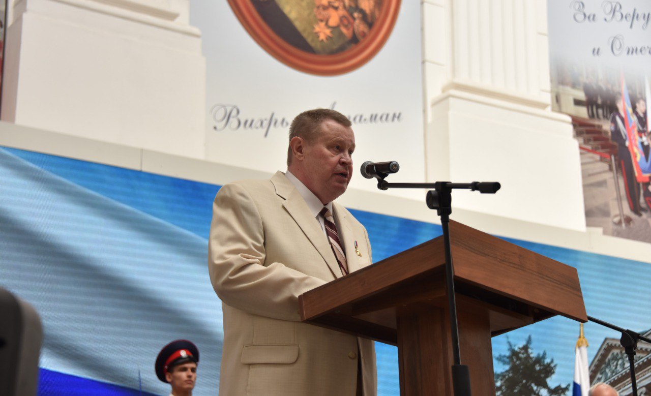 На торжественном собрании он вручил дипломы об окончании университета офицерам, успешно прошедшим обучение в Военном учебном центре и убывающим в войска для дальнейшего прохождения службы.