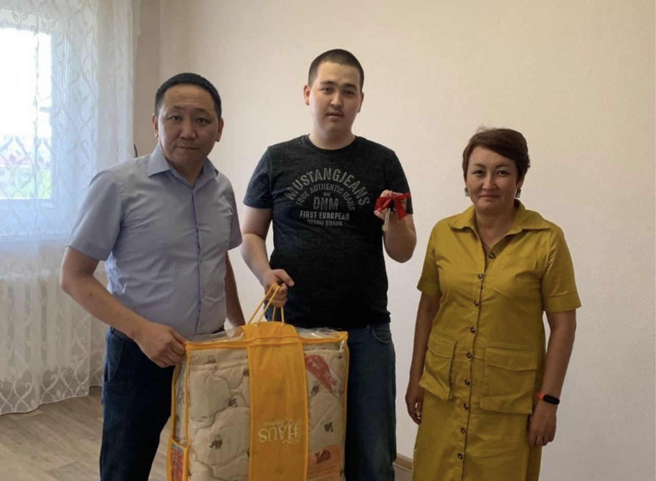 Министр по земельным и имущественным отношениям Республики Калмыкия Мерген Дошкатаев и заместитель Министра социального развития, труда и занятости региона Ольга Маминова вручили жителю города Элисты, относящегося к льготной категории граждан, ключи от благоустроенной двухкомнатной квартиры.