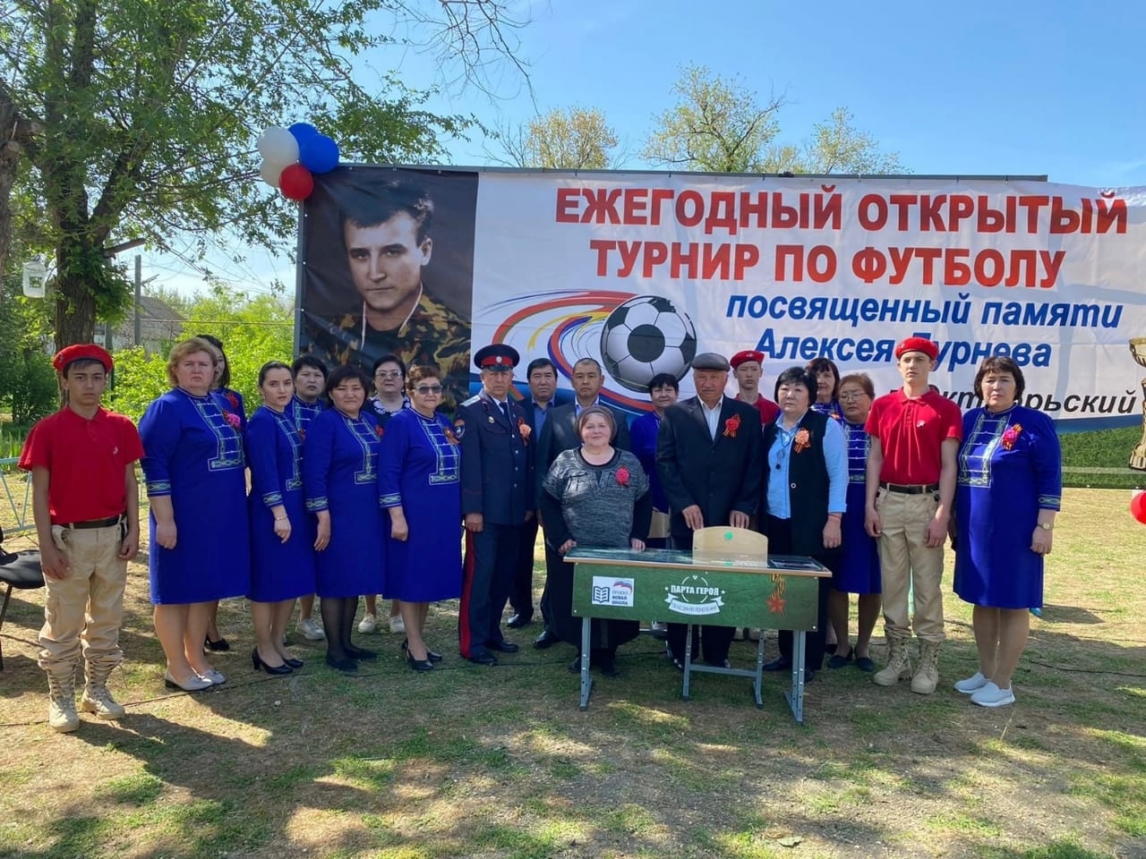 Право первыми сесть за Парту Героя было предоставлено отличникам учёбы: ученице 11 класса Даудовой Папуханум и ученику 6 класса Дыгай Тельман. В ходе мероприятия звучали песни, младшие школьники рассказали стихи о родине, также от всех выступающих прозвучали слова поздравления с наступающим праздником 9 мая. После торжественной части начался ежегодный открытый турнир по футболу, посвященный памяти Алексея Дурнева.