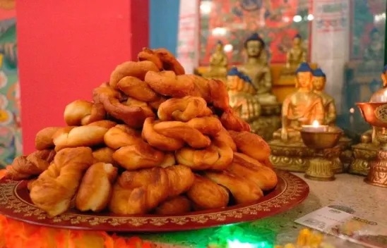Звучат благопожелания, семьи собираются за столом, пьют ароматный чай с боцогами разных форм.