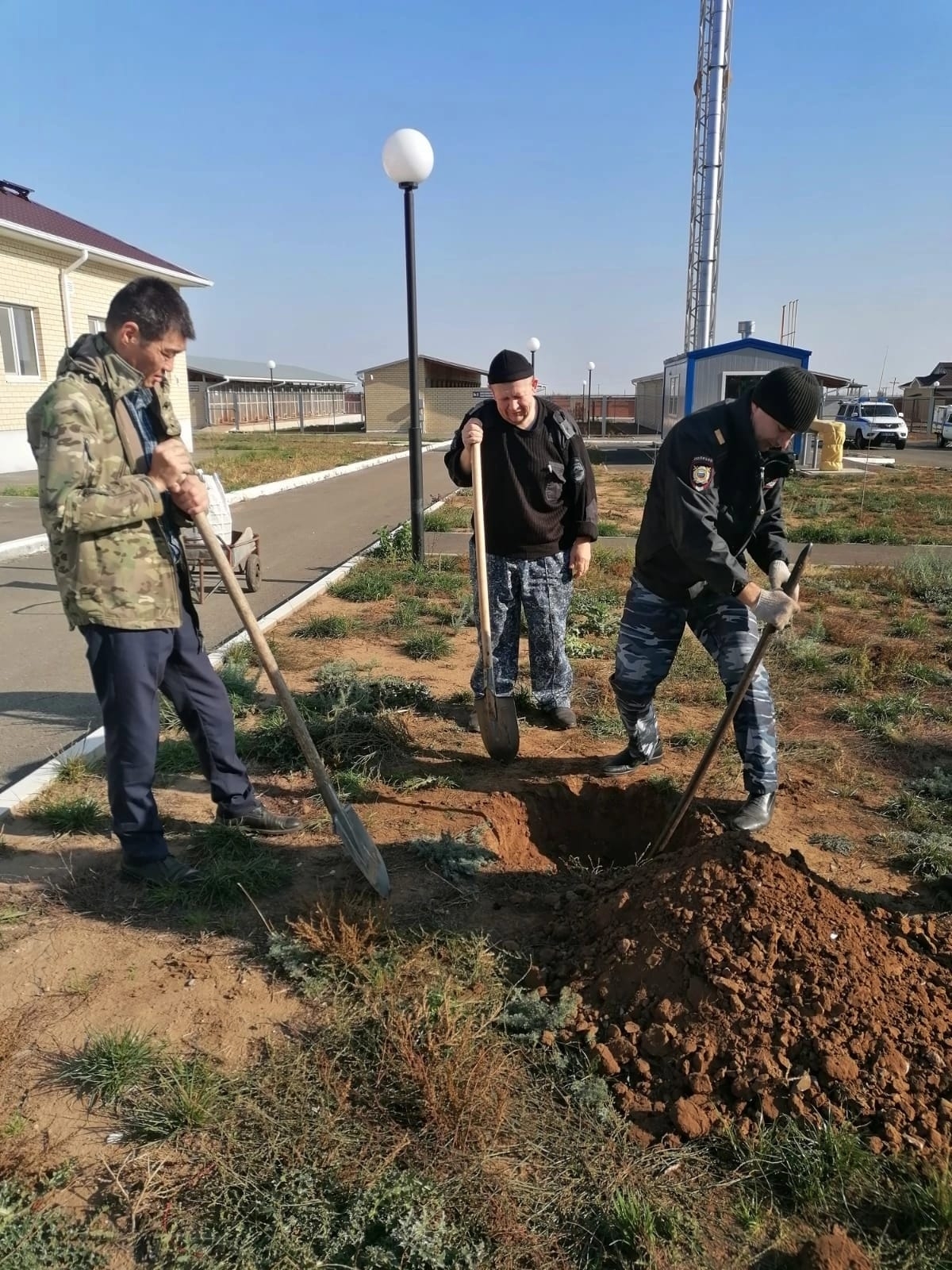Полицейские с удовольствием приняли участие в зеленом преображении территории ЦКС, введенного в эксплуатацию относительно недавно, в конце 2022 года.