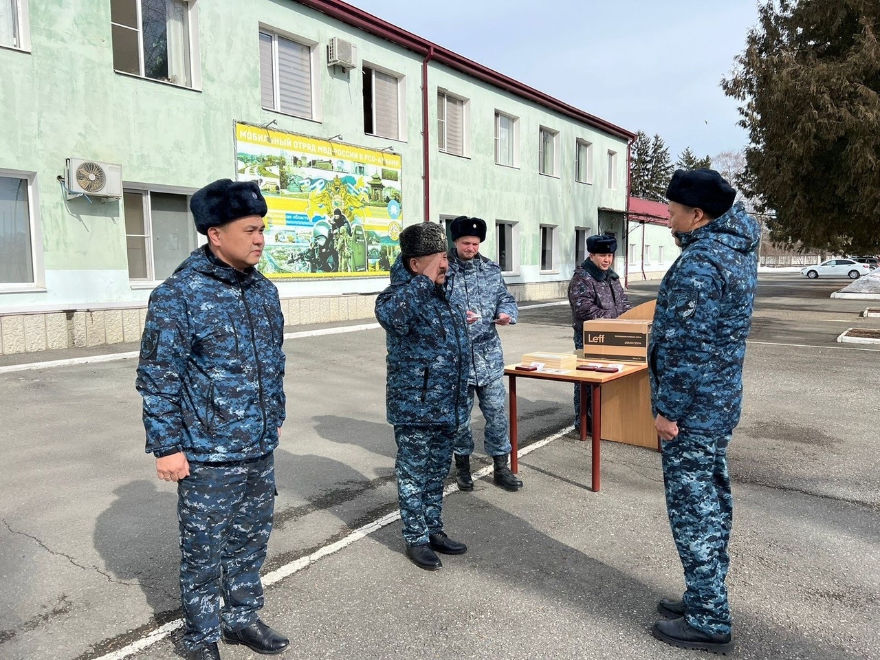 На торжественном построении заместитель министра поблагодарил сотрудников за слаженную добросовестную службу, отличившимся полицейским были вручены ведомственные награды, ценные подарки и благодарственные письма - за образцовое исполнение служебных обязанностей и высокий профессионализм, проявленный при выполнении особо сложных и важных задач на территории Северного Кавказа, взаимодействие и оказание помощи коллегам в организации охраны общественного порядка и общественной безопасности.