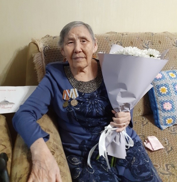 Сегодня свой 90 - летний юбилей отмечает элистинка Надежда Аяевна Тюрбеева. Персональное поздравление от Президента Российской Федерации Владимира Путина ей вручили сотрудники Администрации города Элисты.