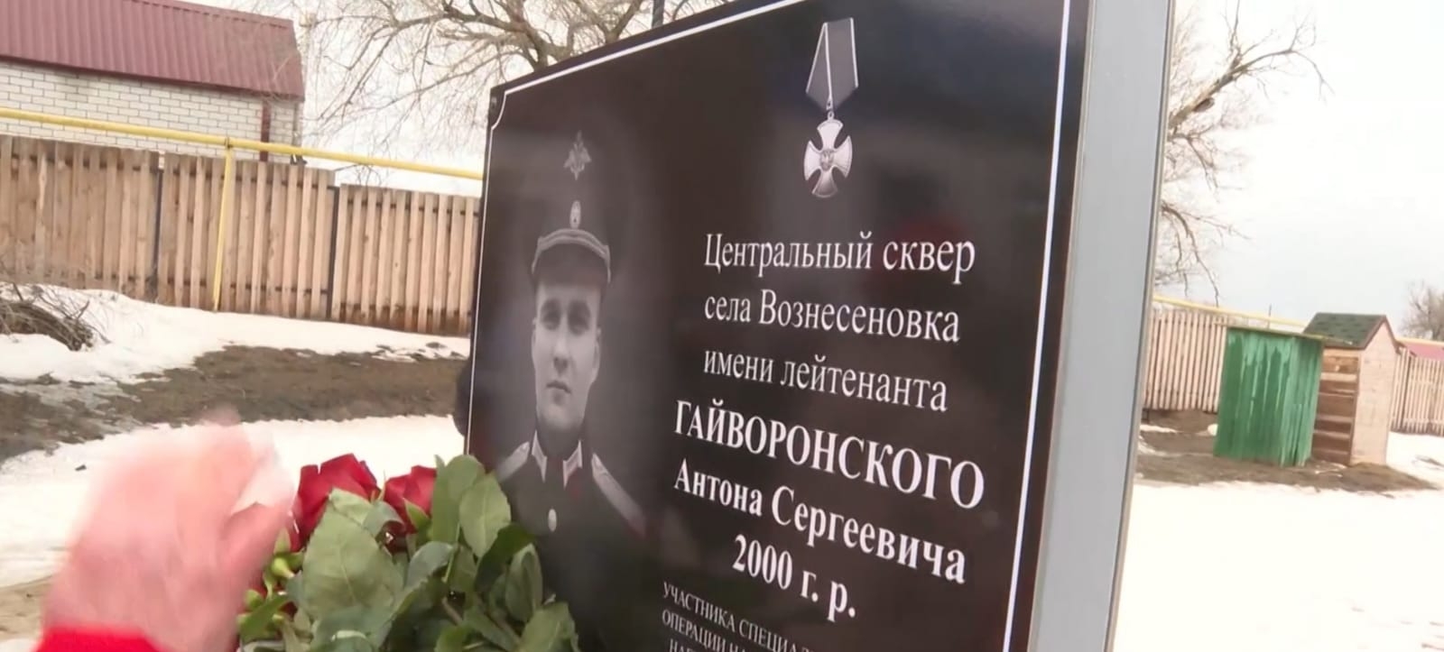 Мемориальную доску в честь погибшего в зоне СВО лейтенанта Антона Гайворонского открыли в селе Вознесеновка Целинного района.