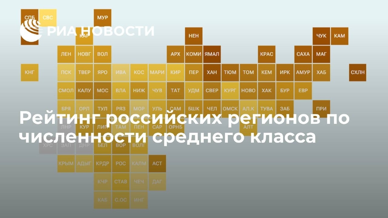 Самое большое число семей, относящихся к среднему классу, проживают в Ямало-Ненецком автономном округе. Их доля близка к 40%. Почти треть — в Чукотском автономном округе, Магаданской области и Москве. В пятерку лидеров попала и Сахалинская область. В то же время в Чечне и Ингушетии процент обеспеченных семей не достигает и двух.