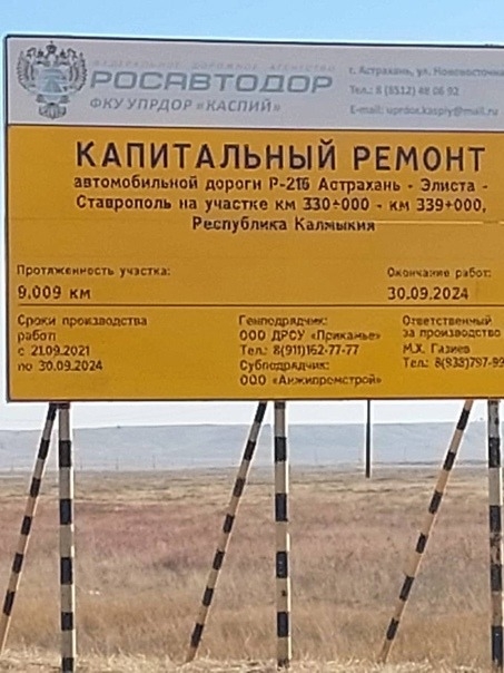 Этот вопрос стал темой обсуждения членами Общественной палаты Приютненского района, на территории которого находится аварийный участок трассы. Как гласит баннер на месте проведения работ, объект должен быть сдан в сентябре 2023 года.