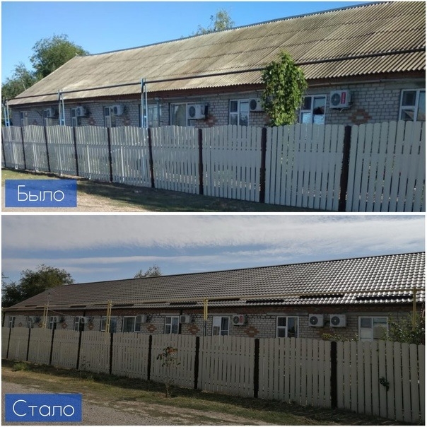 Работы по замене старого шифера на новое покрытие из металлочерепицы проведены за счет внебюджетных средств.