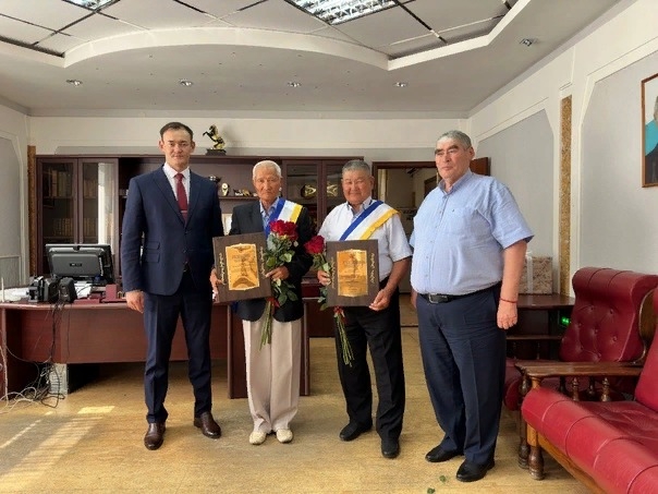 Высокой награды удостоились заслуженные работники сельского хозяйства, ветераны труда Российской Федерации Анжаев Владимир Анжаевич и Какишев Эрдни Очирович.