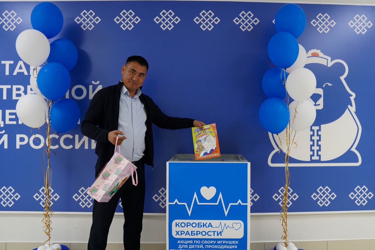 Очир Халгаев , депутат Народного Хурала (Парламента) Республики Калмыкия, руководитель филиала Государственного Фонда «Защитники Отечества» принял участие в акции «Коробка храбрости».