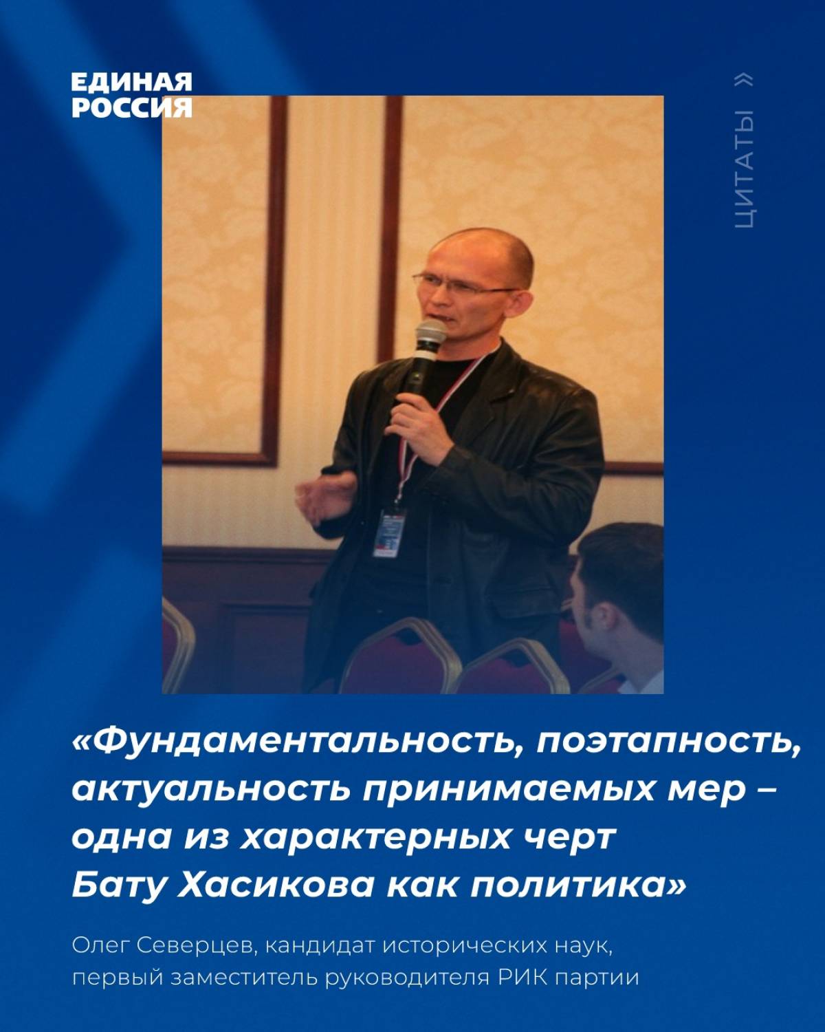 Олег Северцев: "Фундаментальность, поэтапность, актуальность принимаемых мер - одна из характерных черт Бату Хасикова как политика"