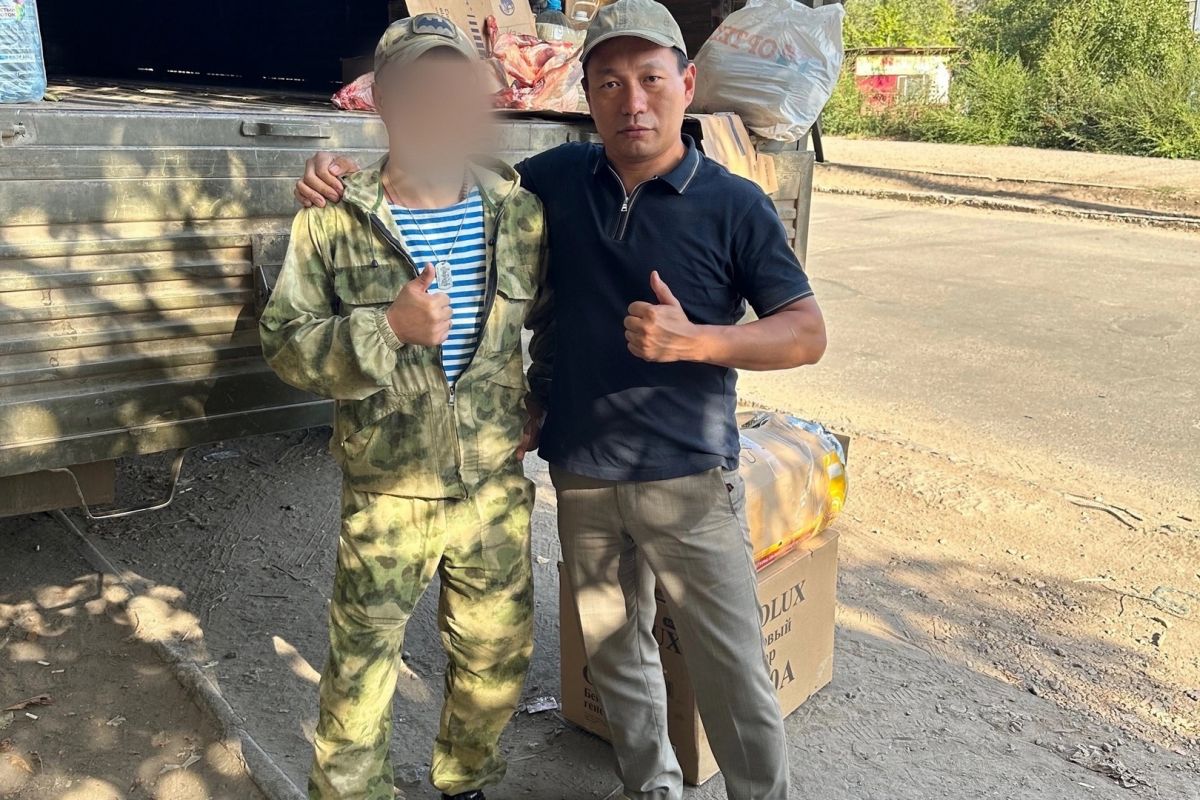 Секретарь Октябрьского местного отделения, глава района Басанг Убушаев лично передал гуманитарную помощь бойцам.