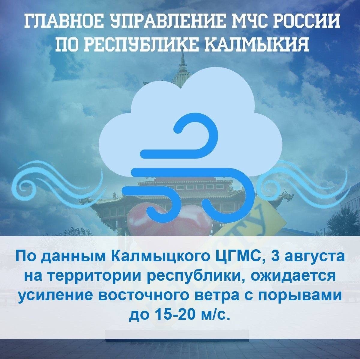 По данным Калмыцкого ЦГМС, 3 августа на территории республики, ожидается усиление восточного ветра с порывами до 15-20 м/с.