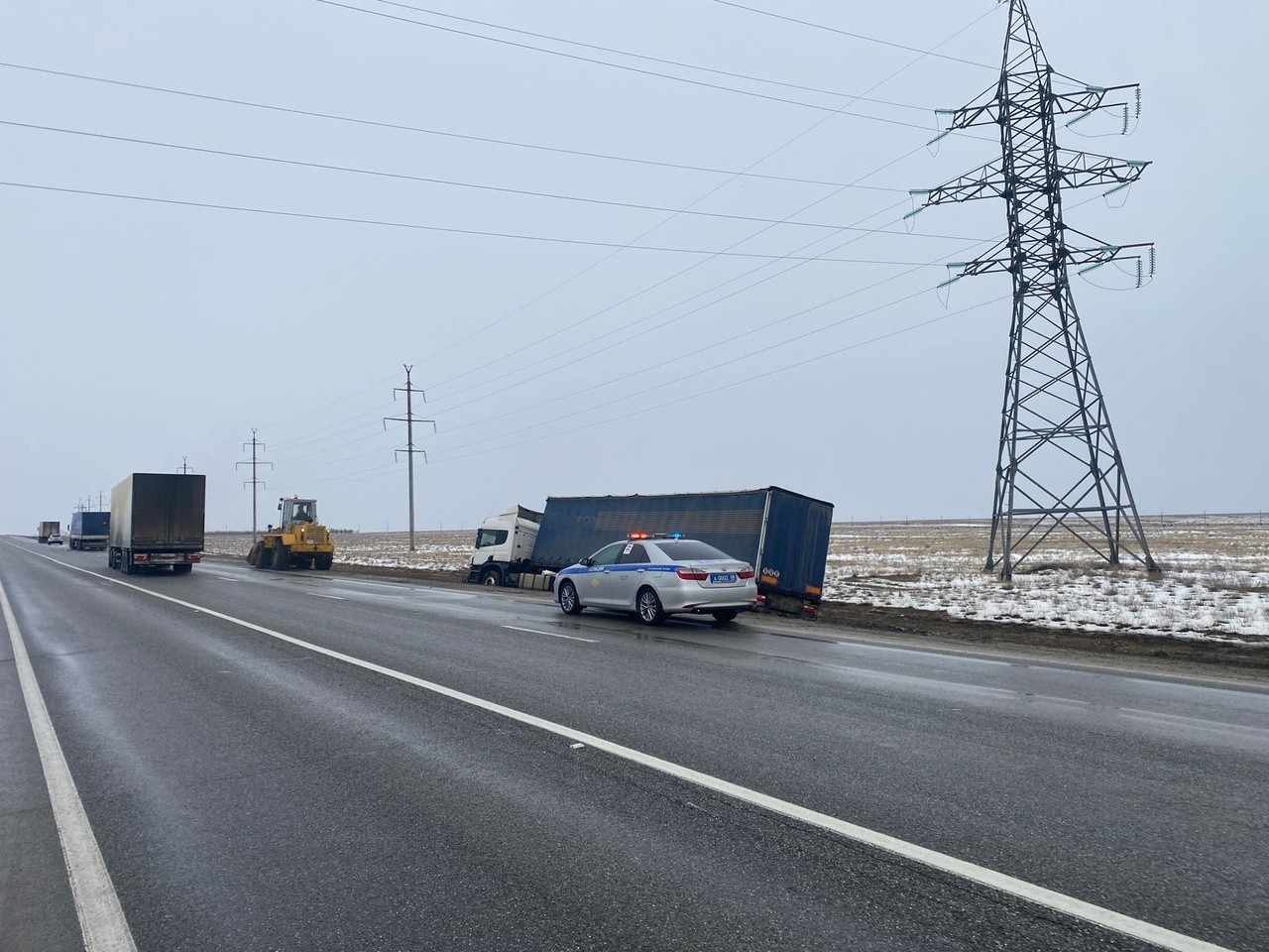 На 307 километре федеральной автодороги Р-216 "Астрахань-Элиста-Ставрополь" 48-летний житель города Санкт-Петербург на грузовике "Скания" не справился с управле