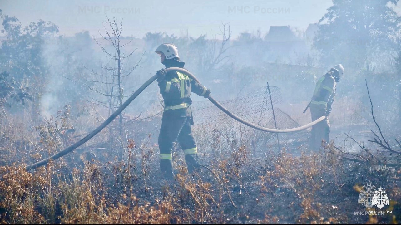 Сегодня в 14 часов 19 минут на Центральный пункт пожарной связи Главного управления МЧС России по Республике Калмыкия поступило сообщение о возгорании сухой растительности в дачном поселке в пригороде Элисты.