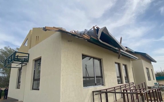 Там в результате ураганного ветра на объекте сорвало кровельное покрытие. Все повреждения зафиксированы и проведена предварительная оценка ущерба. В ближайшее время бригада приступит к восстановительным работам. Идет закупка строительных материалов.