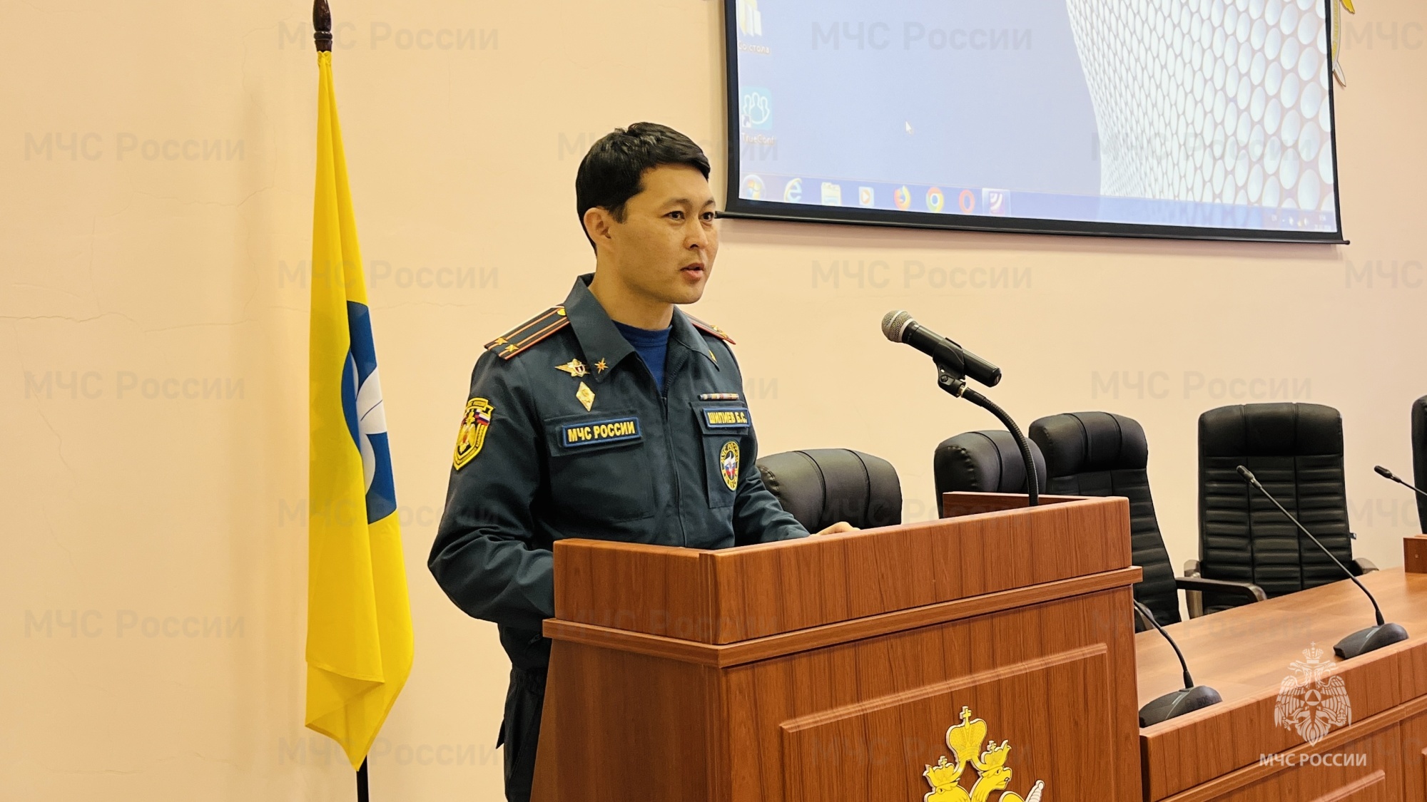 Заместитель начальника отдела мероприятий гражданской обороны и подготовки населения Бадма Шипиев провел лекцию по гражданской обороне. В ходе которой рассказал о об истории становления и развития гражданской обороны России, какие бывают чрезвычайные ситуации, о том, как правильно действовать в случае пожара, землетрясения, наводнения и других чрезвычайных ситуаций.