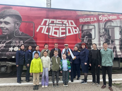 Сотрудники следственного управления СК России по Республике Калмыкия совместно со своими детьми и ветераном Великой Отечественной войны Николаем Ивановичем Ищенко посетили «Поезд П
