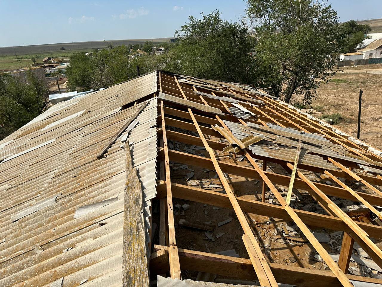 В воскресенье, 13 августа, штормовой ветер и град повредили кровлю здания Целинной школы им. К. Эрендженова.