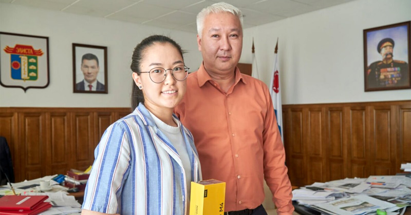 Глава Администрации города Элисты Шафран Тепшинов встретился с победительницей и призерами конкурса на лучший дизайн транспортной карты.