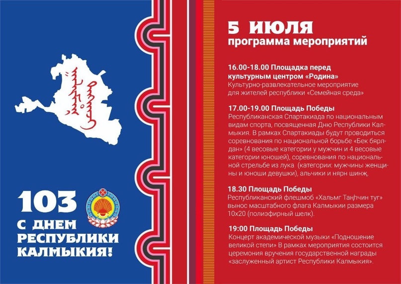 Праздничные мероприятия, посвященные Дню Калмыкии, состоятся во всех муниципалитетах республики!