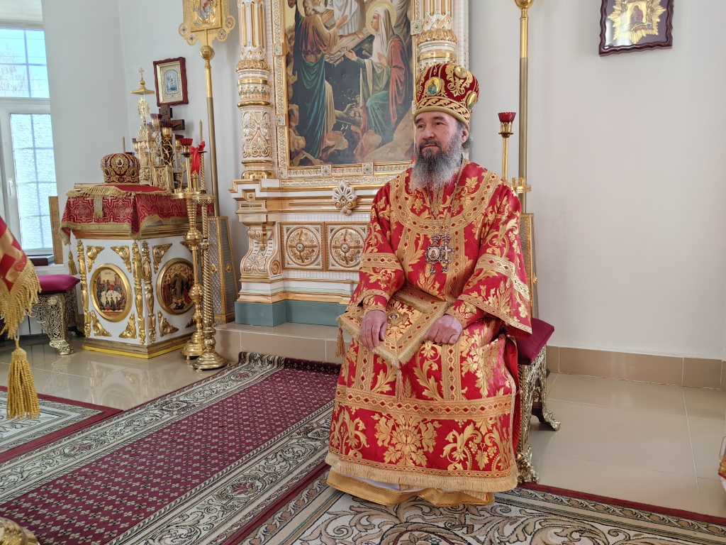 Высокопреосвященному архипастырю сослужили клирики Смоленской и Элистинской епархии.