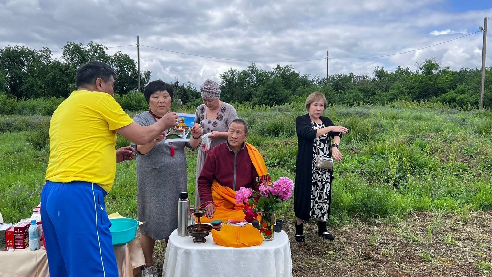 Буддисты Яшалтинского района пригласили Ламу Ген Ямпхе из тантрического хурула г. Городовиковска, который провел молебен и обряд Гал тяклгн.