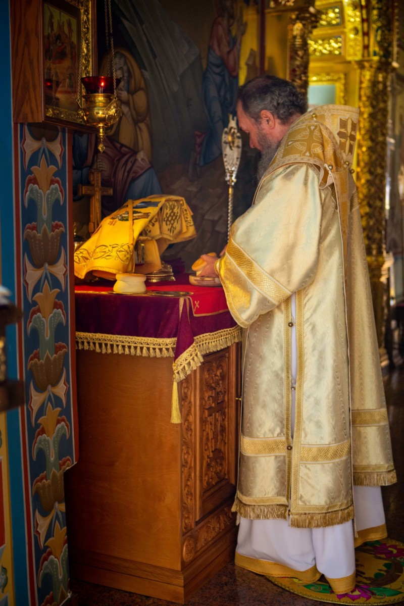 В завершении богослужения архиепископ Юстиниан прочитал молитву Иоанну Крестителю у праздничного образа Святого.