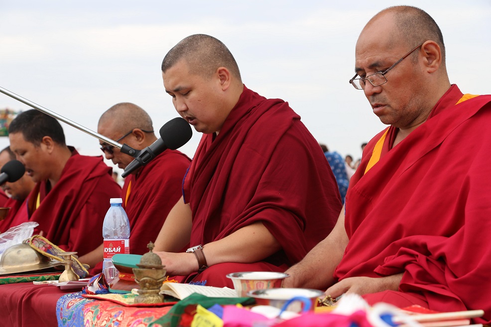 В завершении ритуала все верующие совместно с монахами вознесли благопожелания о процветании нашего края, нашего народа и чтобы буддийское Учение и дальше развивалось, сохранялось и приносило пользу всем живым существам.