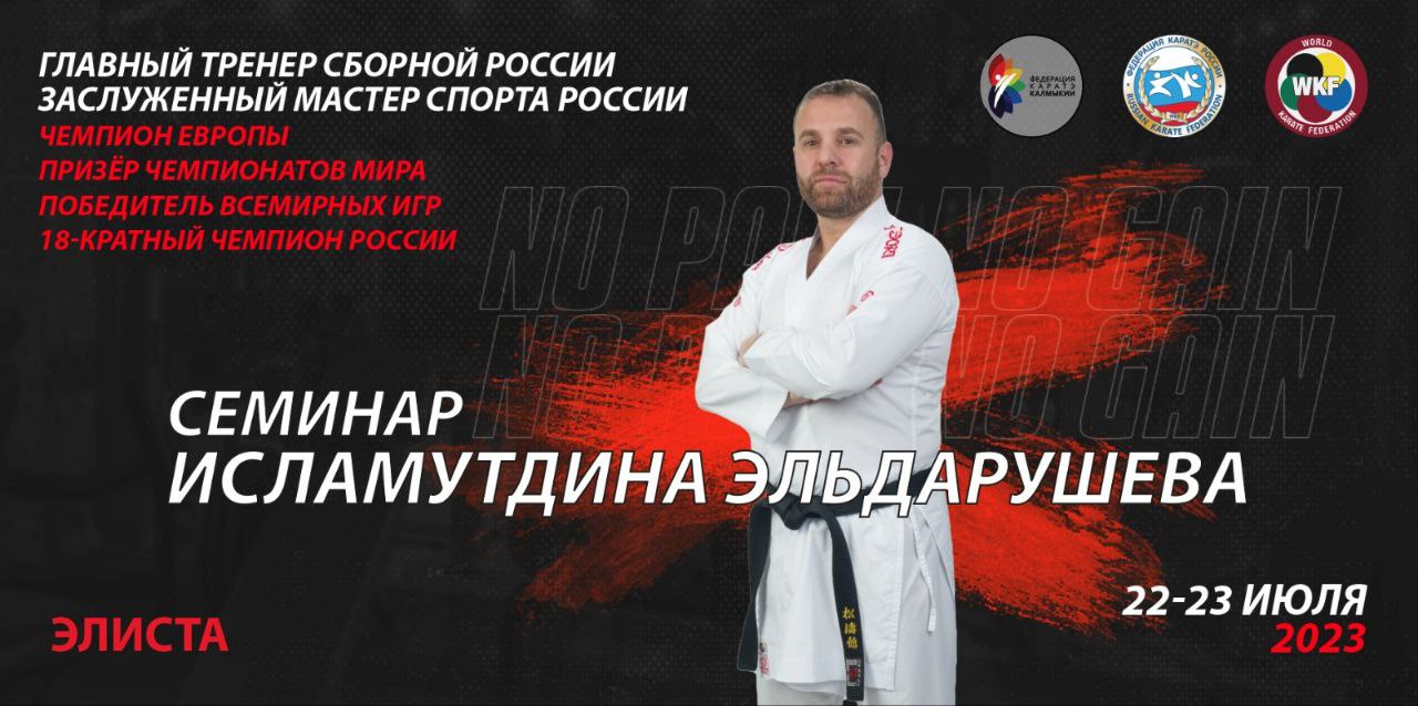 В Элисте, в «Ойрат Арене», состоится семинар по каратэ. Его проведет главный тренер сборной России, восемнадцатикратный чемпион страны, чемпион Европы Исламутдин Эльдарушев.