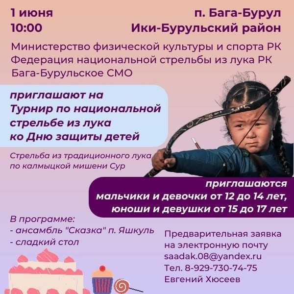 Федерация национальной стрельбы из лука РК, Минспорта РК и Багабурульское СМО приглашают детей принять участие в Турнире по национальной стрельбе из лука ко Дню защиты детей.