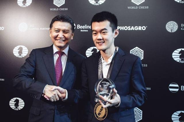 VI президент ФИДЕ Кирсан Илюмжинов поздравил Дин Лижэнь с победой в финале чемпионата мира по шахматам, встреча прошла в Астане.